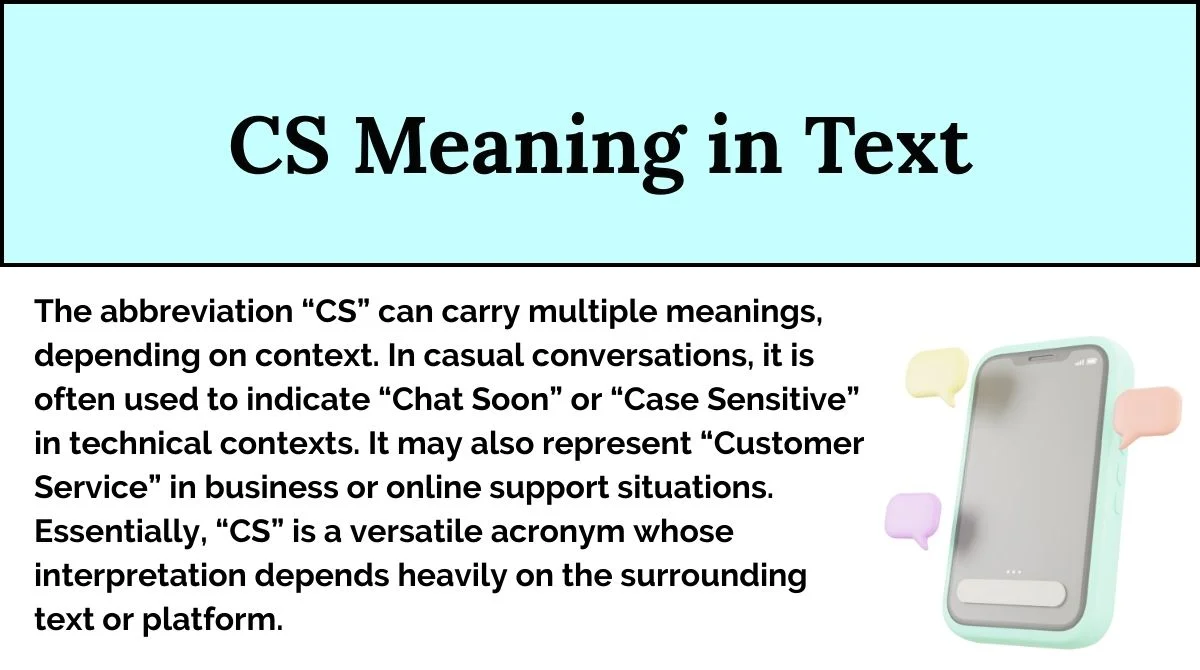 This article explores the meaning of “CS” in text, its origins, uses across different platforms, and tips on how to respond appropriately.