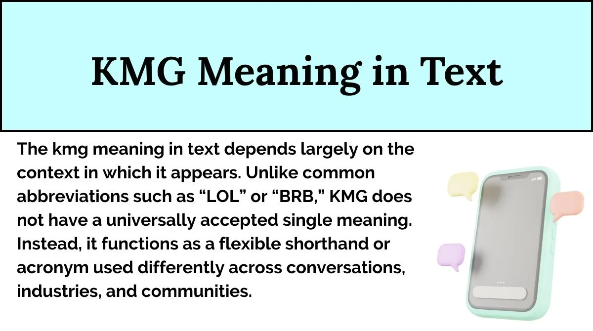 The kmg meaning in text depends largely on the context in which it appears. Unlike common abbreviations such as “LOL” or “BRB,” KMG does not have a universally accepted single meaning. Instead, it functions as a flexible shorthand or acronym used differently across conversations, industries, and communities.