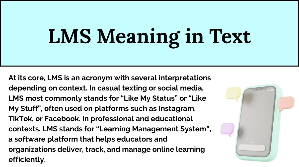 At its core, LMS is an acronym with several interpretations depending on context. In casual texting or social media, LMS most commonly stands for “Like My Status” or “Like My Stuff”, often used on platforms such as Instagram, TikTok, or Facebook. In professional and educational contexts, LMS stands for “Learning Management System”, a software platform that helps educators and organizations deliver, track, and manage online learning efficiently.
