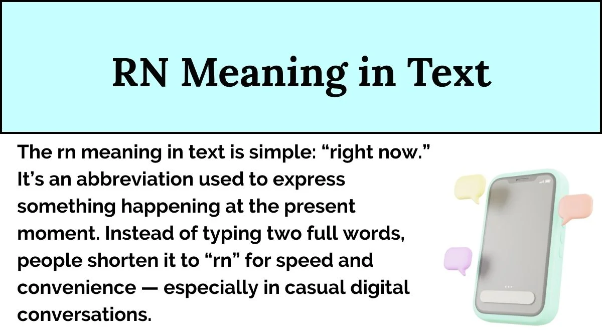 Today, the rn meaning in text is universally understood across platforms, age groups, and cultures that use English online. Its simplicity, clarity, and usefulness have made it one of the most enduring abbreviations in modern digital language.