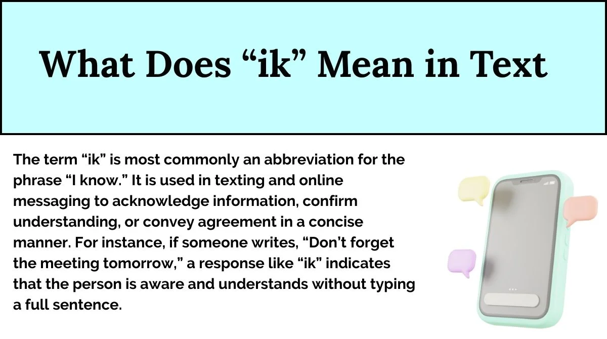 This article will explore the meaning, background, and versatile usage of ik, clarify common misconceptions, compare it with similar abbreviations, and offer tips on how to respond effectively.